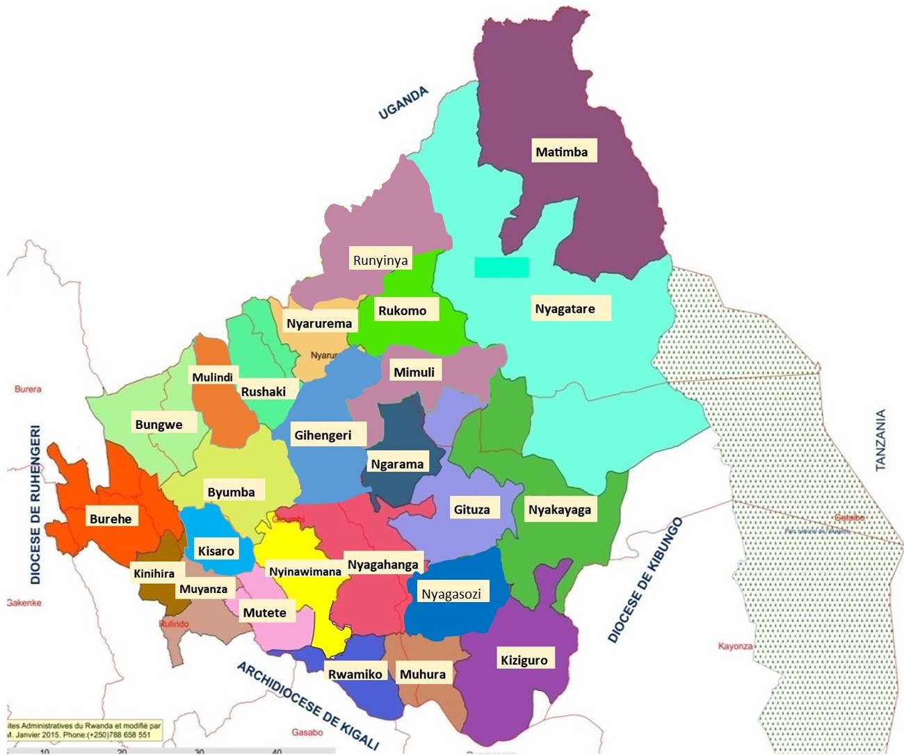 Le diocèse catholique de Byumba a été érigé le 5 novembre 1981, détaché du Diocèse de Ruhengeri et de Kibungo. Il a une superficie d’environ 5.100 km² et couvre la partie Nord-Est du Rwanda. Il fait frontière avec la Tanzanie à l’Est et l’Ouganda au Nord. Au Sud-Est il y a le Diocèse de Kibungo, au Sud-Ouest l’Archidiocèse de Kigali et à l’Ouest le Diocèse de Ruhengeri. Son relief montagneux et très accidenté à l’Ouest (de 1800 à 2400 m d’altitude) s’adoucit au Sud tandis qu’il se transforme brusquement à l’Est pour laisser place à une zone doucement vallonnée (la partie d’Umutara). Le diocèse de Byumba occupe une partie de la Province du Nord (le District de Gicumbi, une partie du District de Rulindo et une autre partie du District de Burera) et une partie de la Province de l’Est (les Districts de Nyagatare et de Gatsibo).
